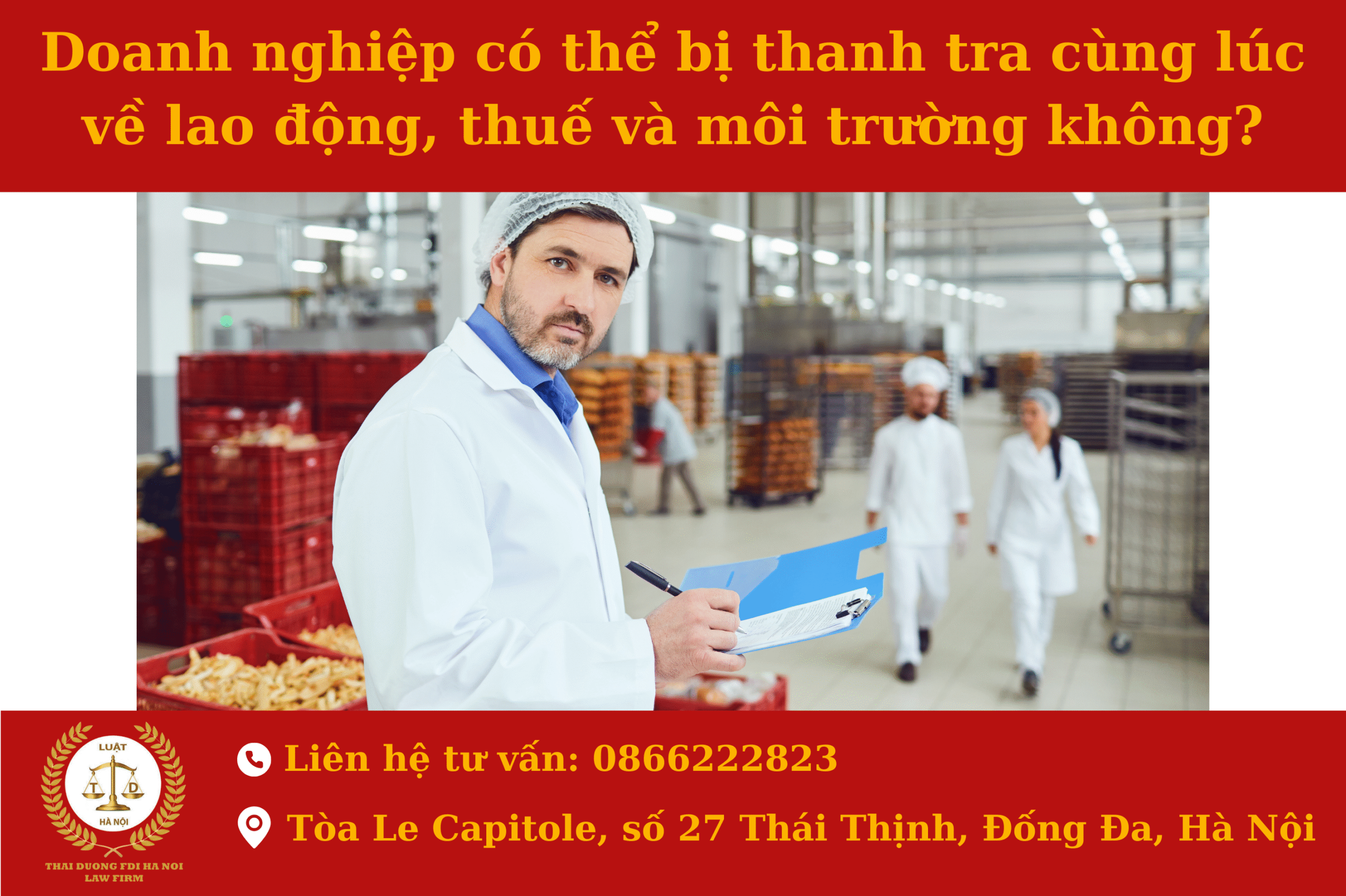 Việc doanh nghiệp bị thanh tra đồng thời về lao động, thuế và môi trường là mối quan tâm lớn của nhiều chủ doanh nghiệp. Theo quy định hiện hành, các cơ quan chức năng cần phối hợp để tránh chồng chéo trong hoạt động thanh tra, kiểm tra doanh nghiệp. Cụ thể, Chỉ thị 20/CT-TTg của Thủ tướng Chính phủ yêu cầu không thanh tra, kiểm tra doanh nghiệp quá một lần trong năm, trừ trường hợp đặc biệt.